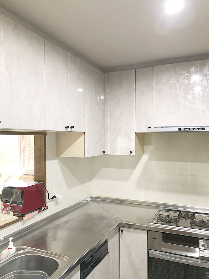 表面のシートを貼り替え、新品のようにキレイになったキッチン