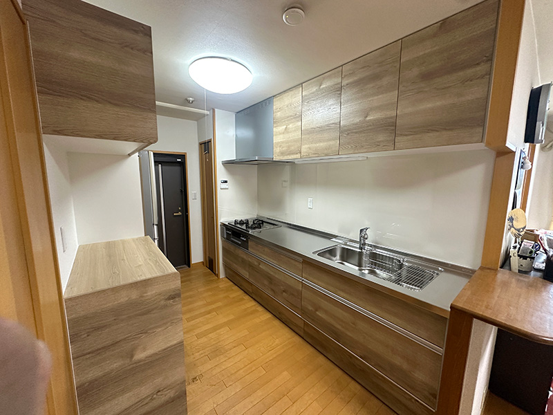 また、既存のキッチンにはきれいなレンジフードとガスコンロがついており交換して日が浅いため、取替後のキッチンでも再利用できるようにしました。