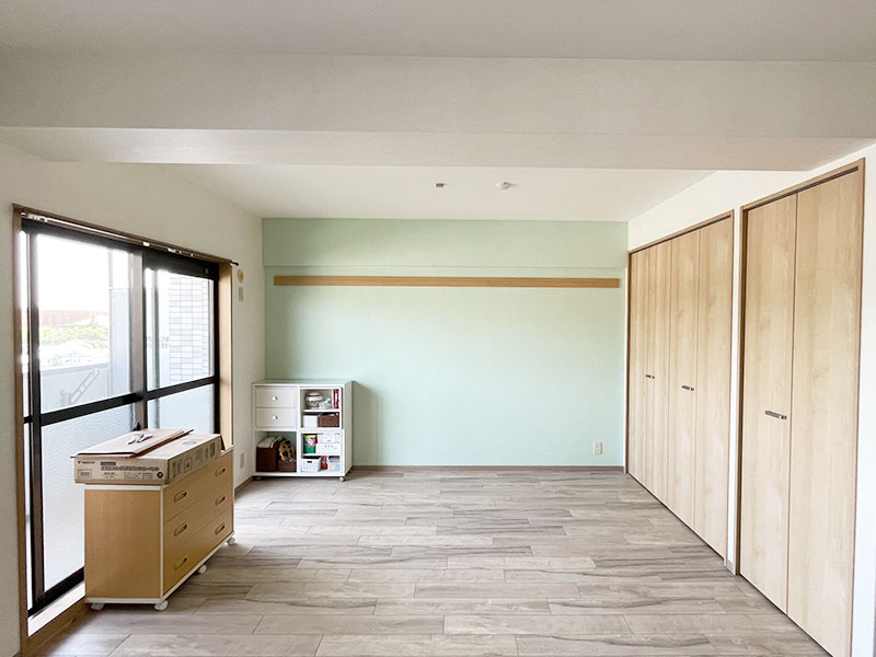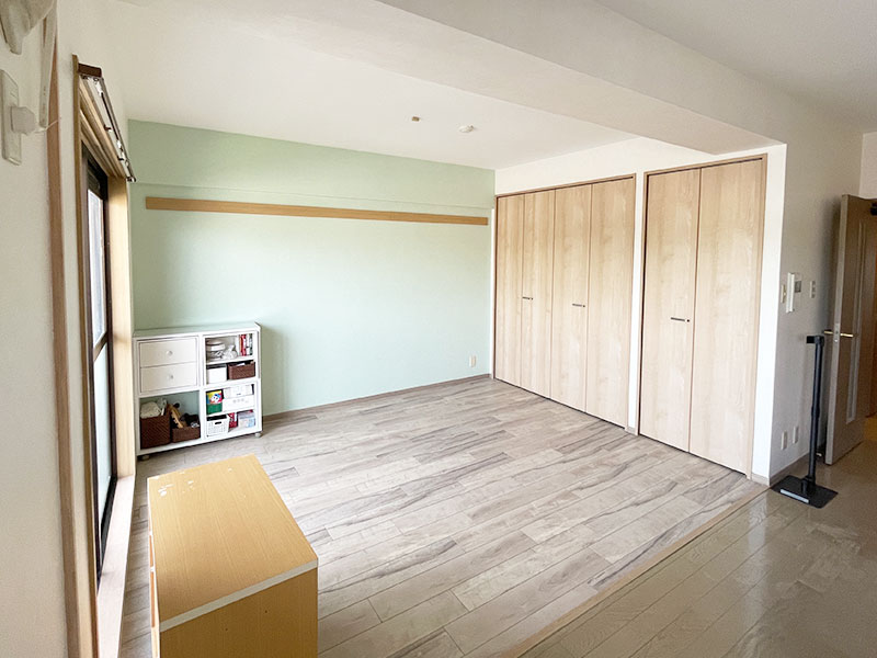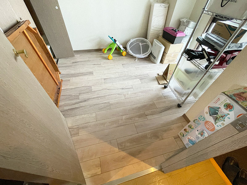 和室をフローリングにする工事で、和室の下のコンクリートの高さが既存フローリング下のコンクリートの高さと異なっていたため、できるだけ段差ができないように厚めのフローリングを提案しました。遮音性能に優れているため、下の階への足音などの音漏れも心配ありません。