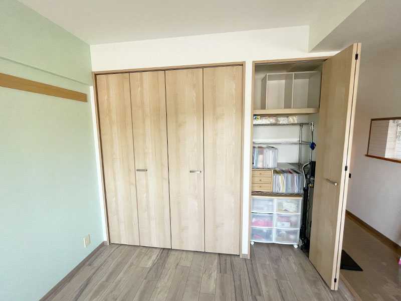 フローリング:NODA アートクチュール・ソン 収納建具:Panasonic ベリティス レンジフード:クリナップ フラットスリムレンジフード(色:シルバー) レンジフード:クリナップ ガラストップガスコンロ |