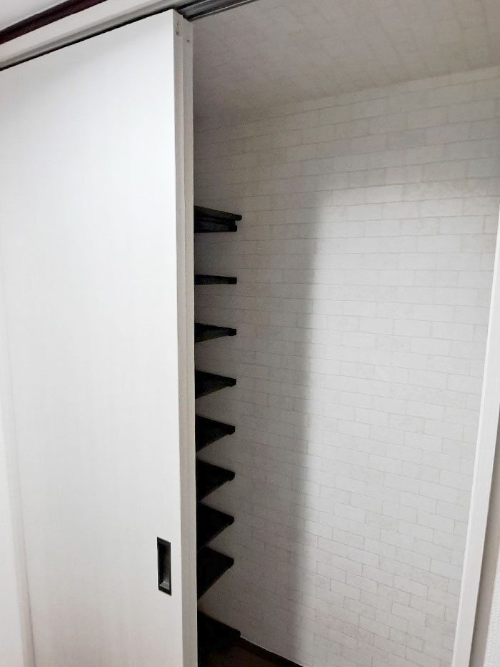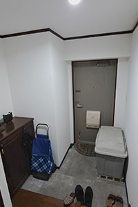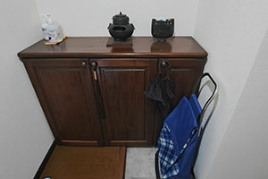 今回の工事はよくある下駄箱を、奥行きの広いものに取り替えて、かつ底板を無くしたいというのがお施主様のご希望でした。