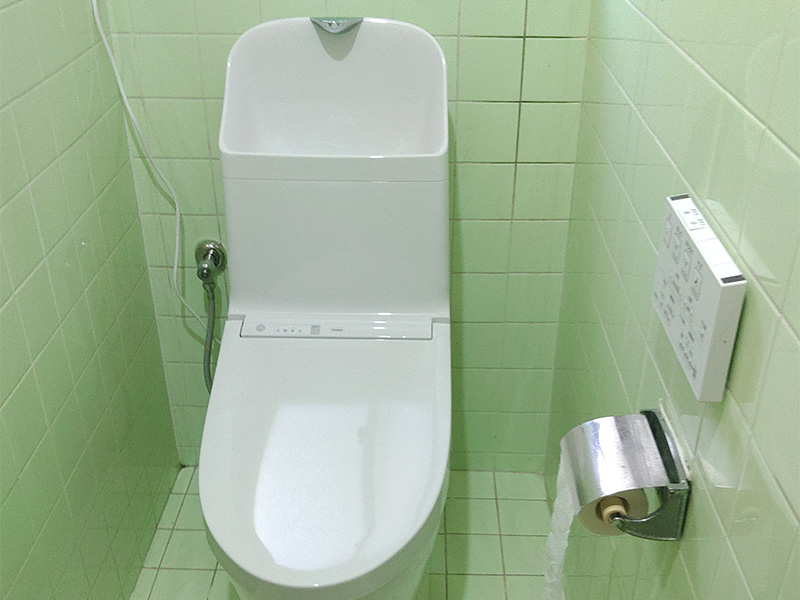 新しいトイレは節水機能付きで、使い勝手もアップ。