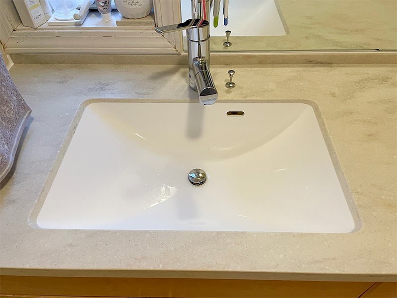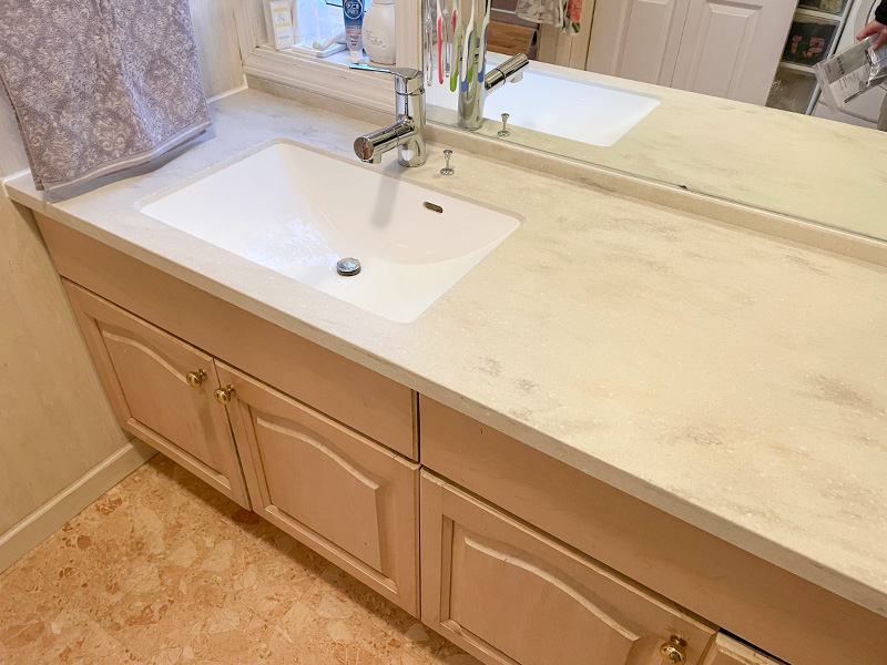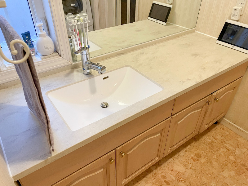 元々が造作洗面台のため、リフォームをするにも既製品が上手く設置できないなど制約がありました。ですが、今回カウンター下の収納部はそのままに、カウンターのみの取替ができたことで、当初の希望通りにリフォームをしていただくことができました。
